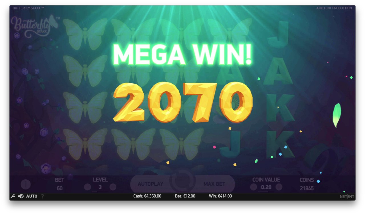 NetEnt released their games butterfly Staxx in June 2017. Although it looks like their previous neon Staxx, it is still worth playing. Players return ratio was 96,8 percent.
