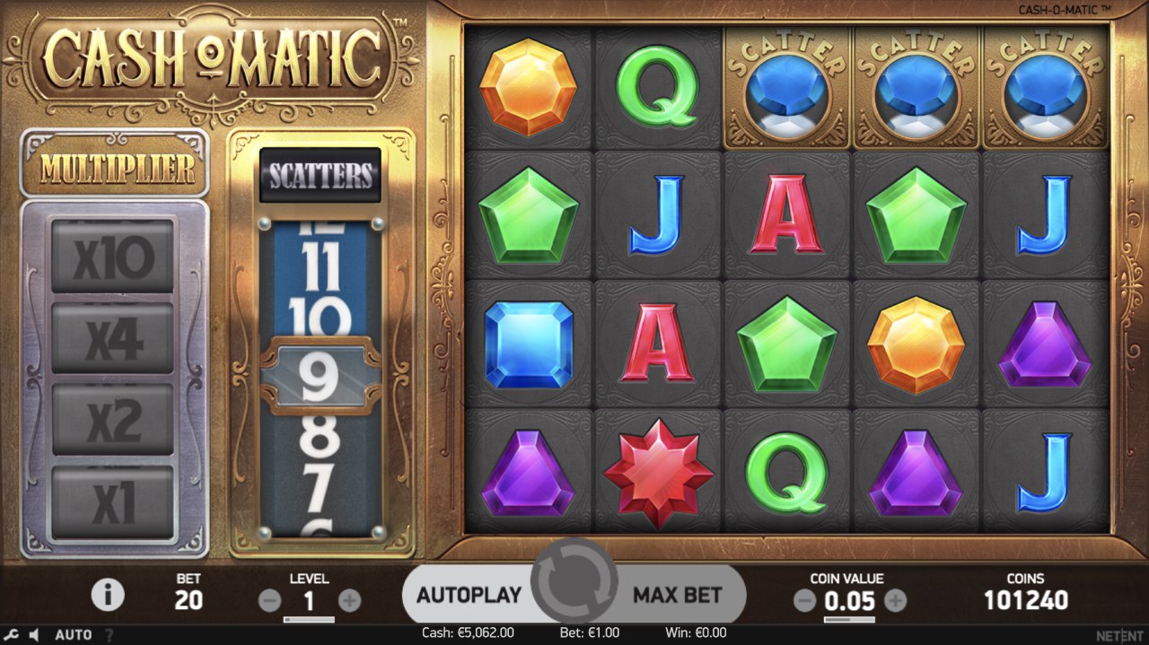 Cash -O-Matic is a 5 rows, 4 rows and 1024 fixed bet line video slot from NetEnt - Yes, that's right, a huge 1024 different betting line!