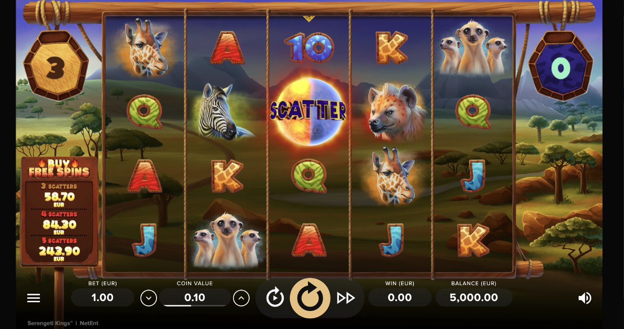 A brand spanking new video slot with great visuals and music - what is the difference? King Serengeti is a great game to look at, but it is a game that really makes this title stand out. This feature buy another, first in NetEnt game, make a new experience. Moreover, even if there is a standard game is free to rotate. When everything is taken into account, capabilities - including generous multiplier - means this is definitely worth a try. Continue to scroll down the page to see why this is the most polished NetEnt a slot for some time - try to NetEnt Casino!