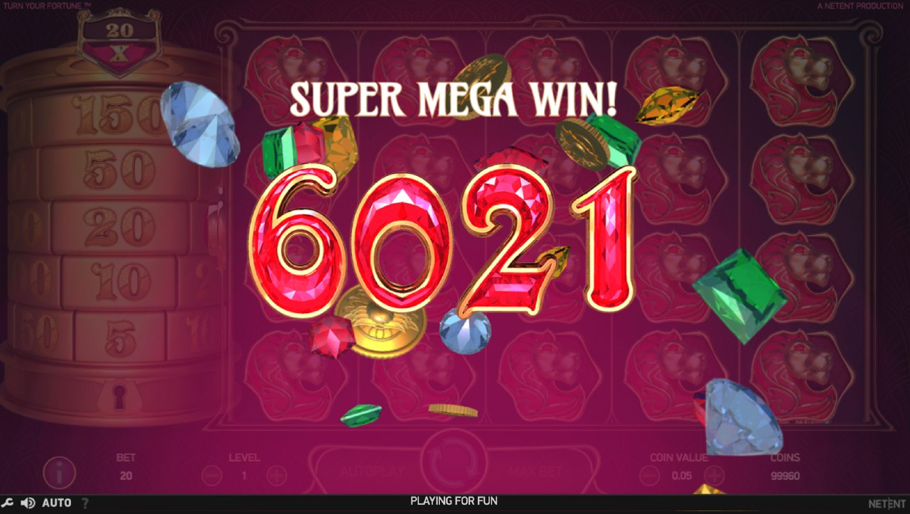 The maximum win on a single bet line in Turn Your Fortune is £2,000. Whereas the maximum coinciding win (i.e. the wins from the bet lines added together) is £80,000.